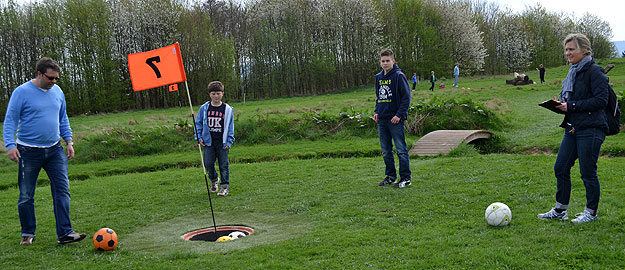Fußballgolf ist eine Mischung aus beiden Sportarten, wobei ein Fußball auf verschiedenen Bahnen mit verschiedenen Schwierigkeitsgraden mit dem Fuß eingekickt oder besser eingelocht werden muss. Noch nie gesehen? Fußballgolf ist eine neue Trendsportart, die seit 2012 auch in Detmold direkt neben dem Flugplatz gespielt werden kann. Und wer hat’s erfunden? „Die Schweden und Dänen sind Vorreiter. Von dort ist es nach Deutschland gekommen“, sagt Betreiber Christian Manier. In der Sportart werden bereits Meisterschaften ausgetragen wie gerade erst im Mai auf der 50.000 Quadratmeter großen Detmolder Anlage die Europameisterschaft.
