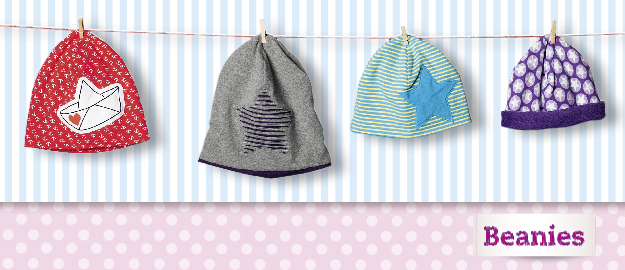 Beanies in kuscheligen Garnen oder Stoffen mit bunten, coolen Mustern werden lässig getragen. Der Begriff ist wahrscheinlich abgeleitet vom englischen Wort bean, die Bohne, eine umgangssprachliche Bezeichnung für den Kopf. Die Beanie hat keinen Bommel, ähnelt in etwa einer Pudelmütze und läuft oben enger zusammen. Als Longvariante darf sie auch am Hinterkopf abknicken. Und während viele Mützen zuletzt im Zuge der DIY-Welle gestrickt oder gehäkelt wurden, so werden Beanies mittlerweile auch gerne genäht. Kinder und Jugendliche lieben die genähten Mützen. „Die Jersey- und Baumwollstoffe empfinden Kinder angenehm zu tragen. Sie zwicken nicht, sie kratzen nicht“, weiß Lydia Pohlmann.